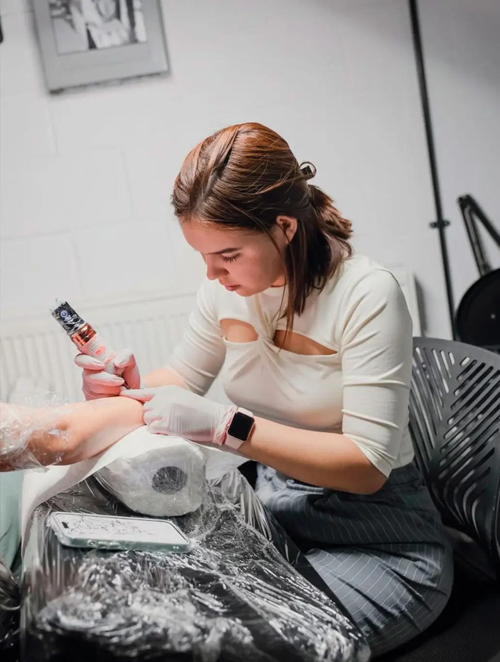 Leandra Carvalho is a Brazilian tattoo artist specialising in fine line work, with over four years of experience. She has been working in the field since 2021, dedicating herself to creating delicate, elegant, and timeless tattoos.